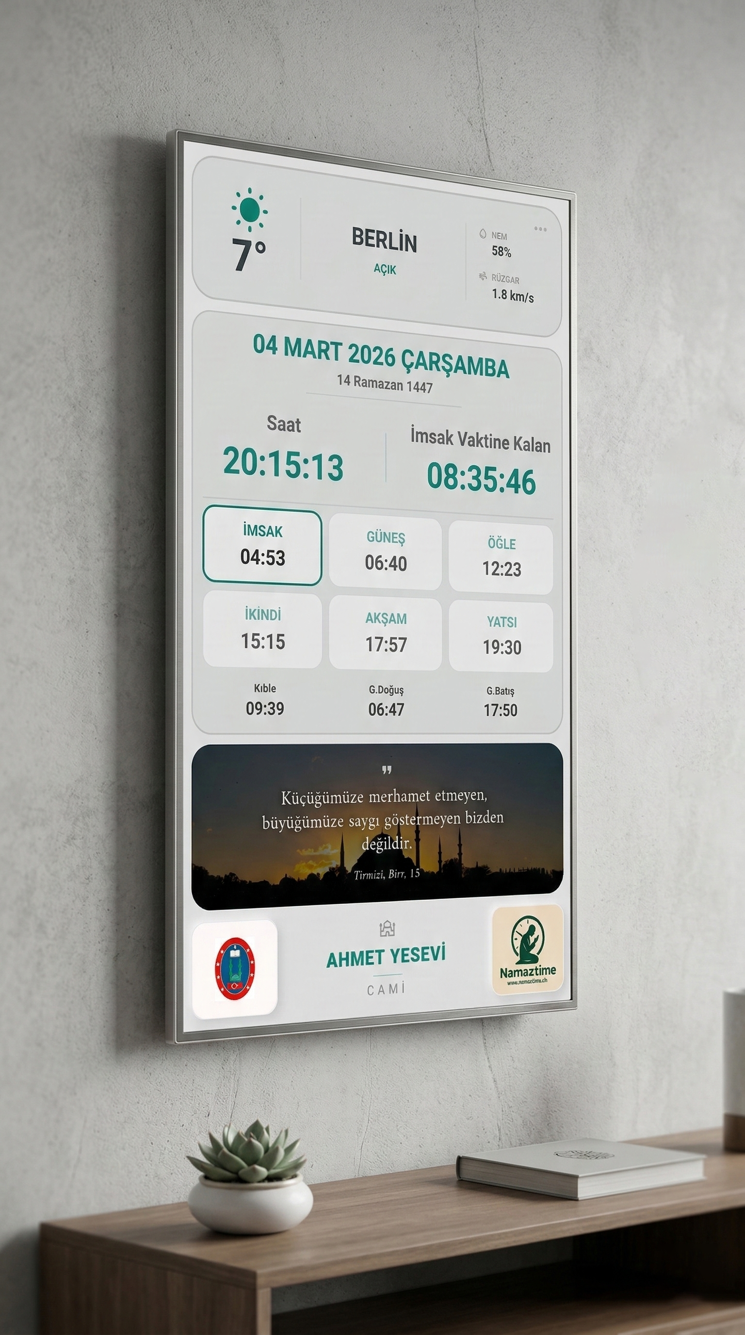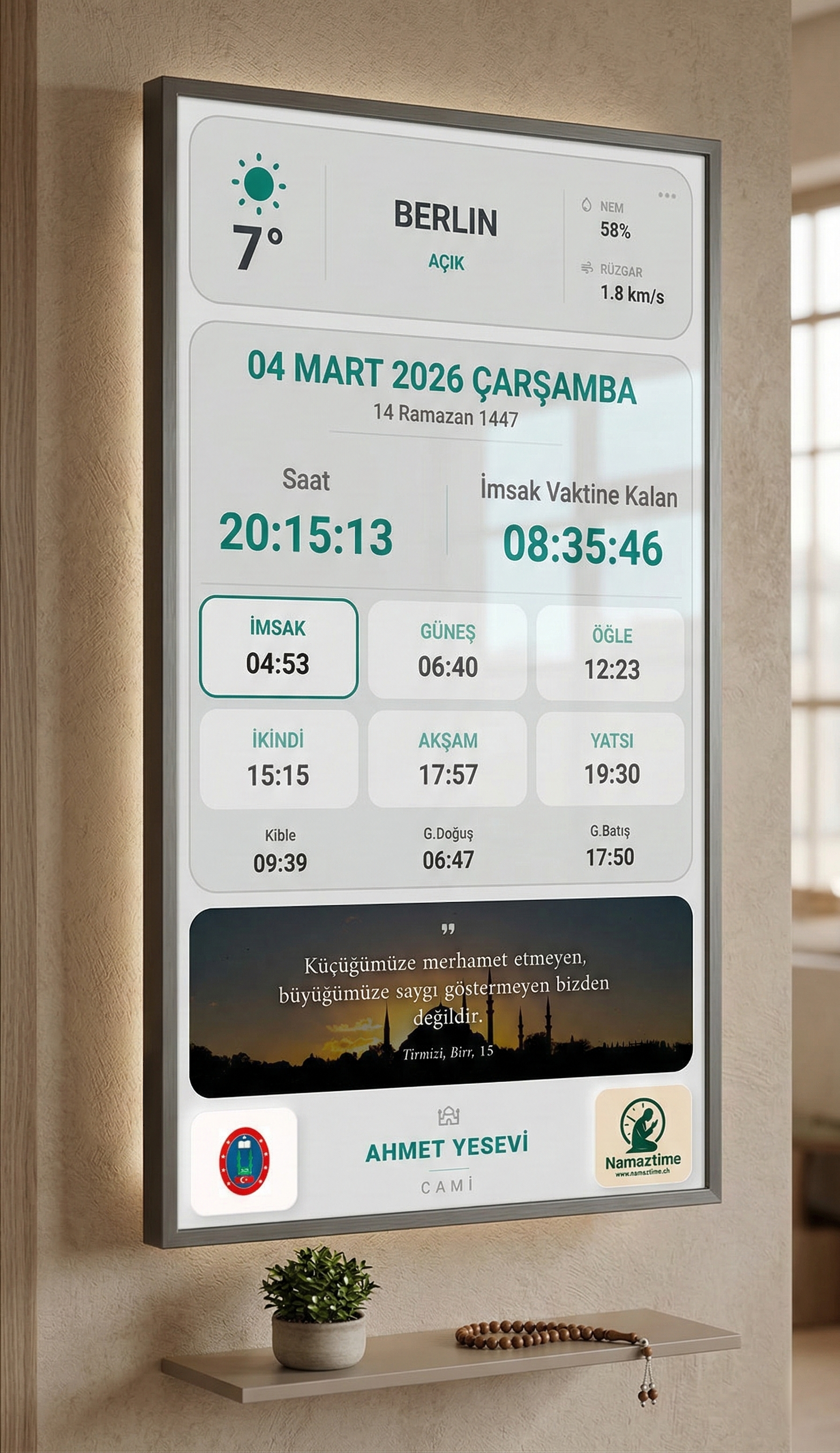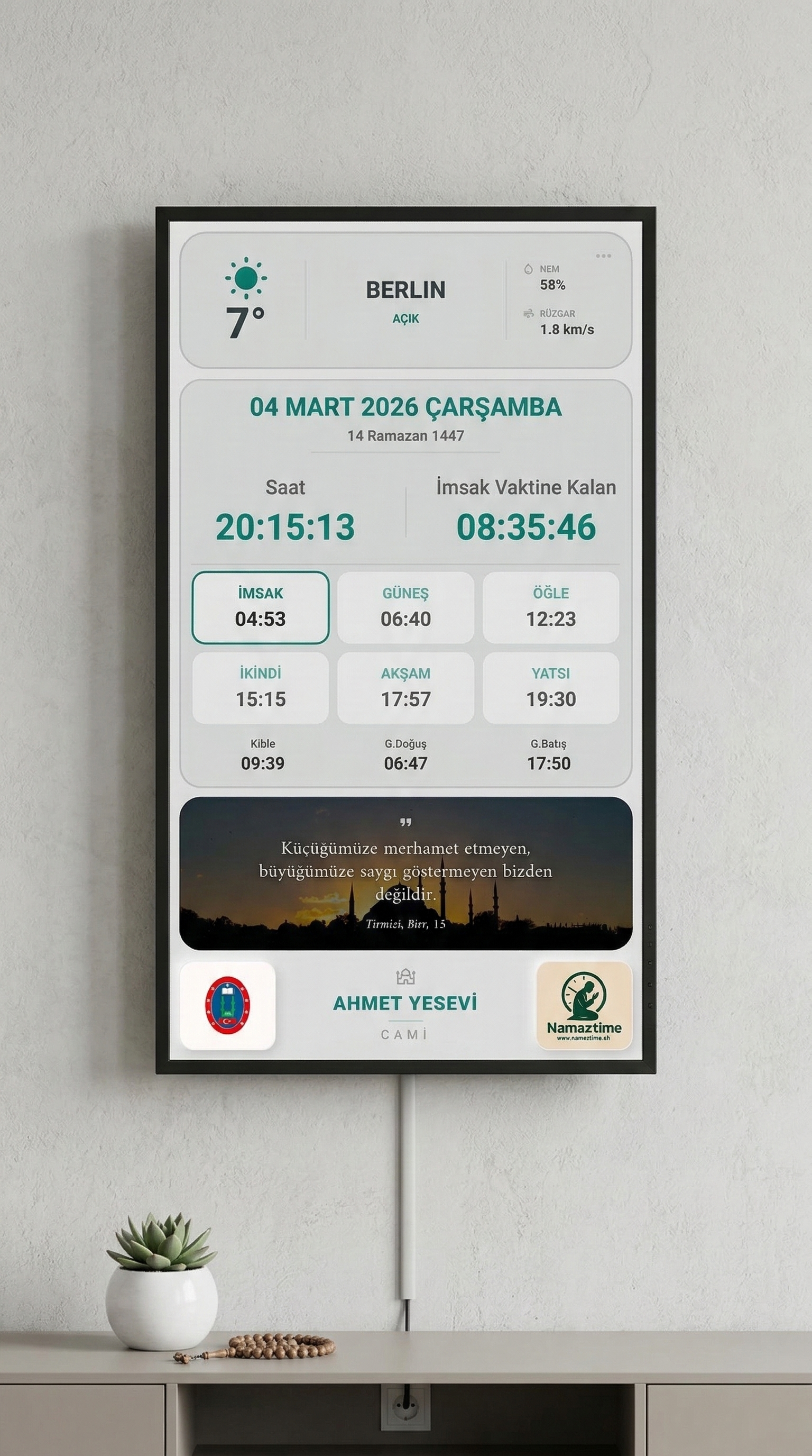 Piyasadaki ucuz alternatifler ve statik panolar kısa sürede arızalanır veya güncel kalmaz. Namaztime, profesyonel donanımı ve sürekli güncellenen yazılımı ile kalıcı ve prestijli bir çözüm sunar.