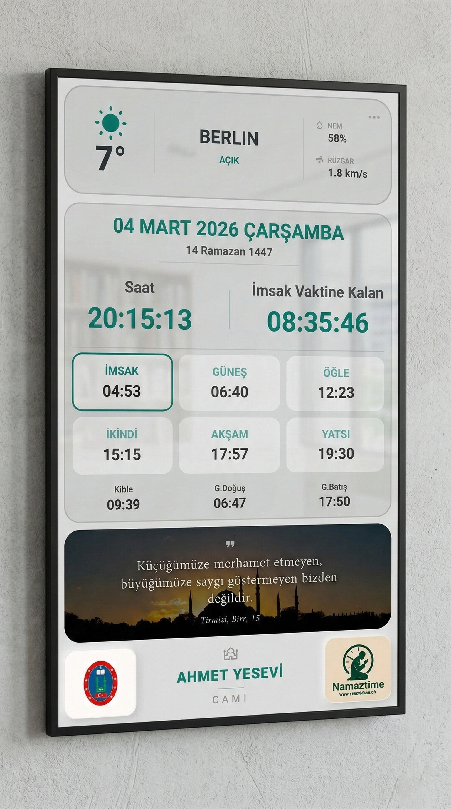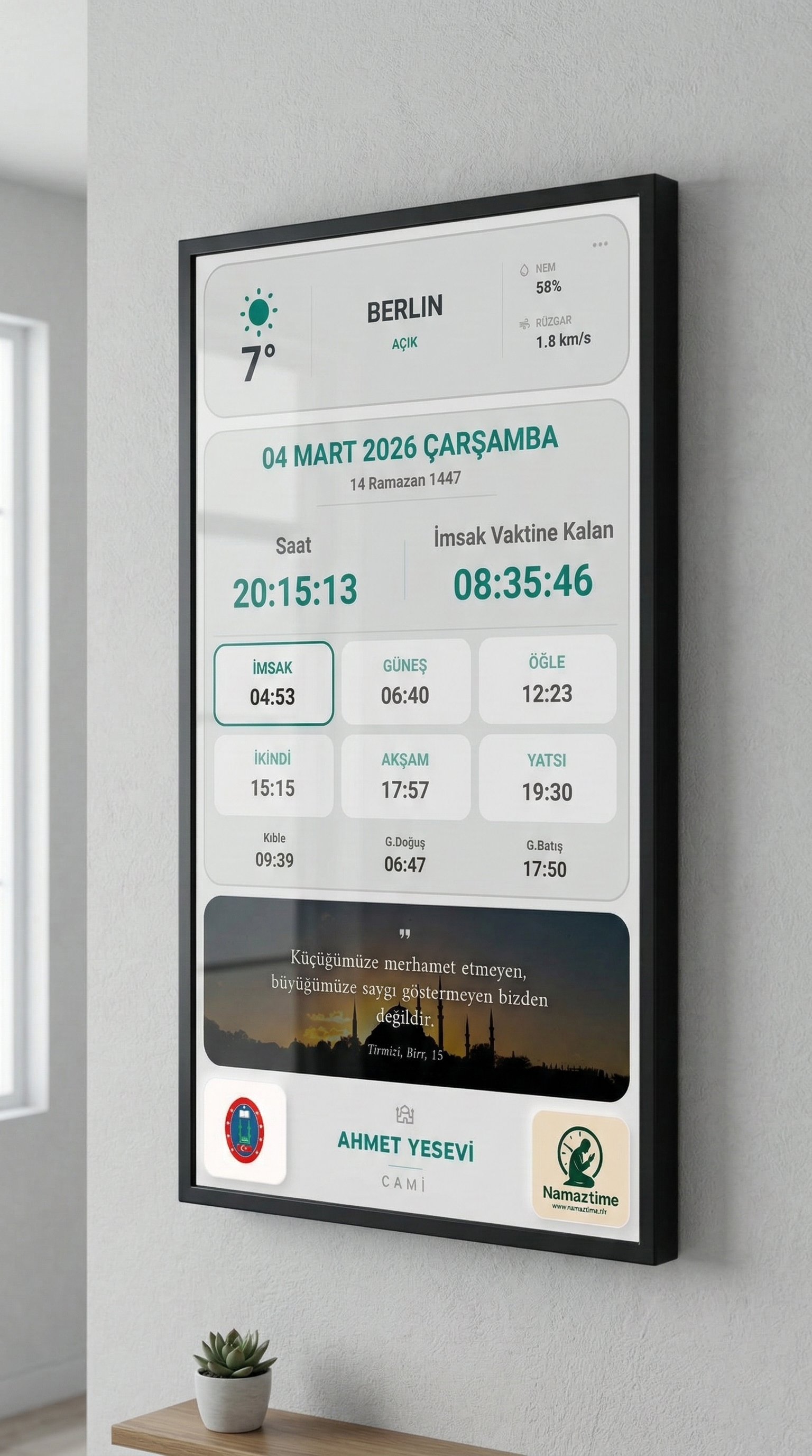 Piyasadaki ucuz alternatifler ve statik panolar kısa sürede arızalanır veya güncel kalmaz. Namaztime, profesyonel donanımı ve sürekli güncellenen yazılımı ile kalıcı ve prestijli bir çözüm sunar.
